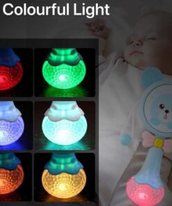 Bebelușul poate scutura jucăria, mușca urechile moi sau privi efectele luminoase colorate.