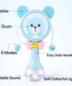 Această zornăitoare interactivă muzicală este o jucărie educativă ideală pentru bebelușii de peste 12 luni, care combină sunete, lumini și texturi pentru a stimula toate simțurile copilului. Cu un design adorabil în formă de ursuleț sau iepuraș, culori pastelate și materiale sigure, jucăria îi ajută pe cei mici să își dezvolte auzul, vederea, coordonarea mână–ochi și motricitatea fină.