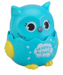 Jucărie bufniță cu mecanism press & go. Împingeți-i capul în jos și eliberați, micuța bufniță turcoaz cu ochi mari va înainta rapid.