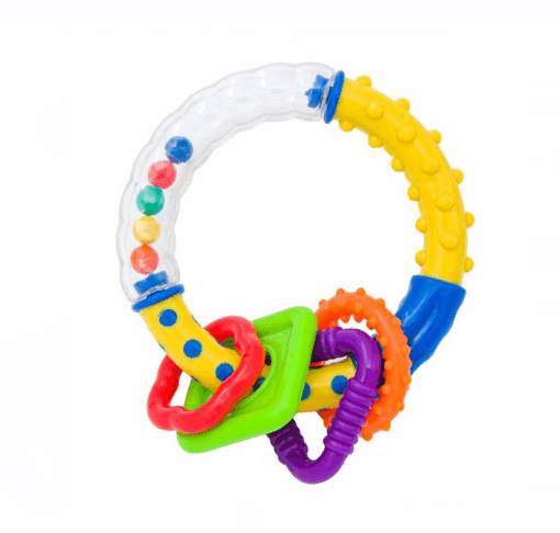 Jucarie zornaitoare cu elemente de dentitie. Ajuta la dezvoltarea simturilor, sunetul relaxeaza, iar modelele colorate atrag in mod placut copilul.