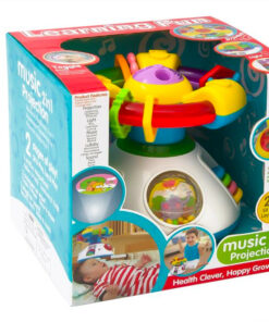 Jucărie 2 în 1 care se poate transforma dintr-un centru de activitate într-un proiector luminos pentru copil atunci când este în pat. Are lumini colorate și sunete realiste, muzică și cântece de leagăn.