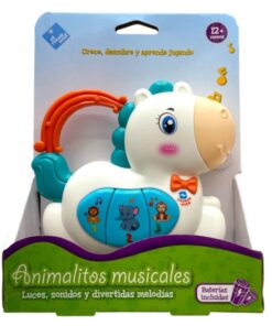 Această jucărie muzicală sub formă de căluț este perfectă pentru copiii cu vârsta peste 12 luni. Ușor de manevrat și extrem de atrăgătoare, jucăria combină sunete vesele, lumini și butoane interactive pentru a stimula dezvoltarea timpurie a celor mici.