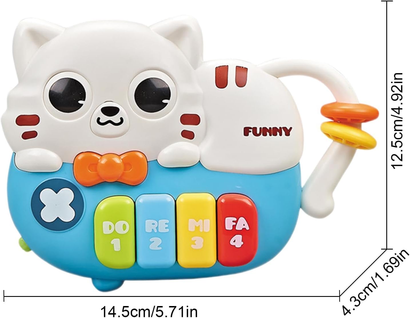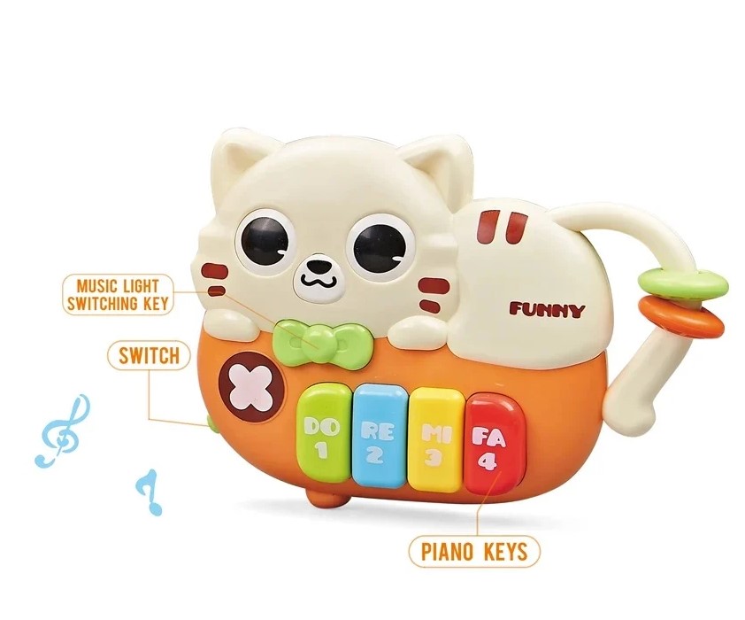 Această jucărie muzicală în formă de pisicuță este alegerea perfectă pentru copiii mici care încep să exploreze lumea prin sunet, culoare și atingere. Prevăzută cu 4 clape colorate, fiecare notă este însoțită de sunete melodioase și lumini blânde care îi captează imediat atenția copilului.