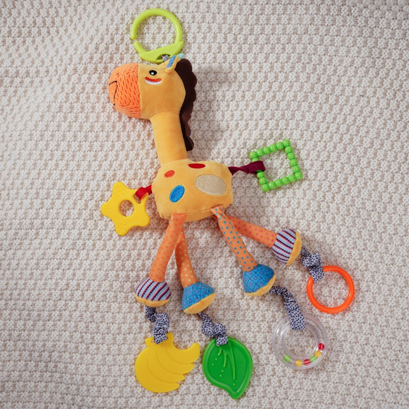 - Ușor de atașat: Prevăzut cu un inel de prindere, ideal pentru a fi agățat la pătuț, cărucior, landou sau scaun auto.