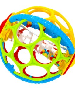 Aruncand, rostogolind si apucand mingea, copilul va exersa dexteritatea manuala degetelor si motricitatea fina. Bilutele colorate, inchise in recipientul de plastic vor stimula simtul auzului si o vor face mai atractiva pentru bebelusi.