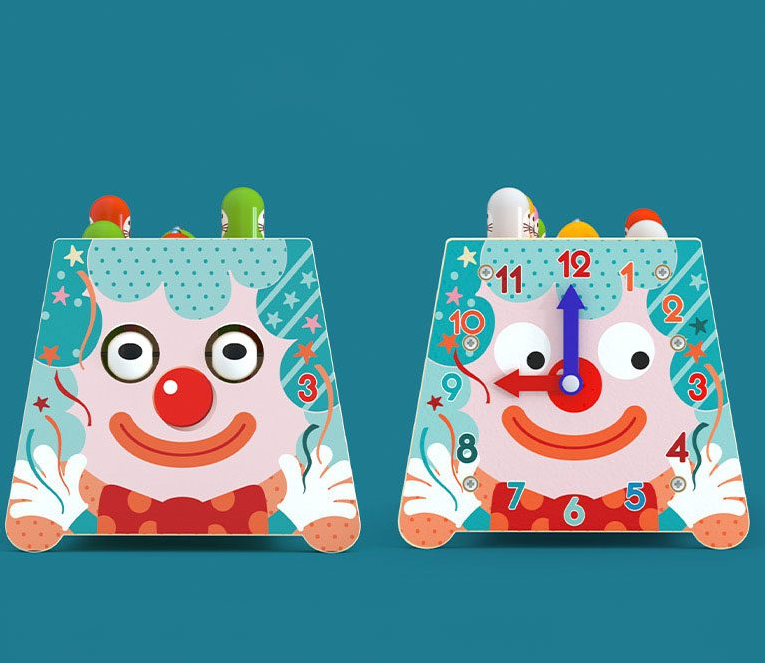 - Ceas educativ: Un ceas cu ace mobile pe una dintre fețele laterale ale jucăriei, care ajută copiii să învețe să citească ora.