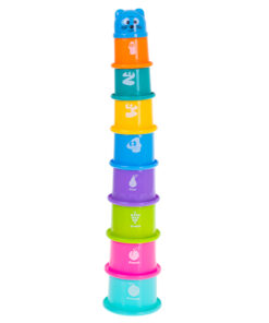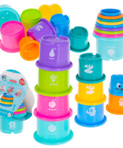 Jucarie turn de stivuire pentru bebelusi cu 9 pahare, numere si fructe