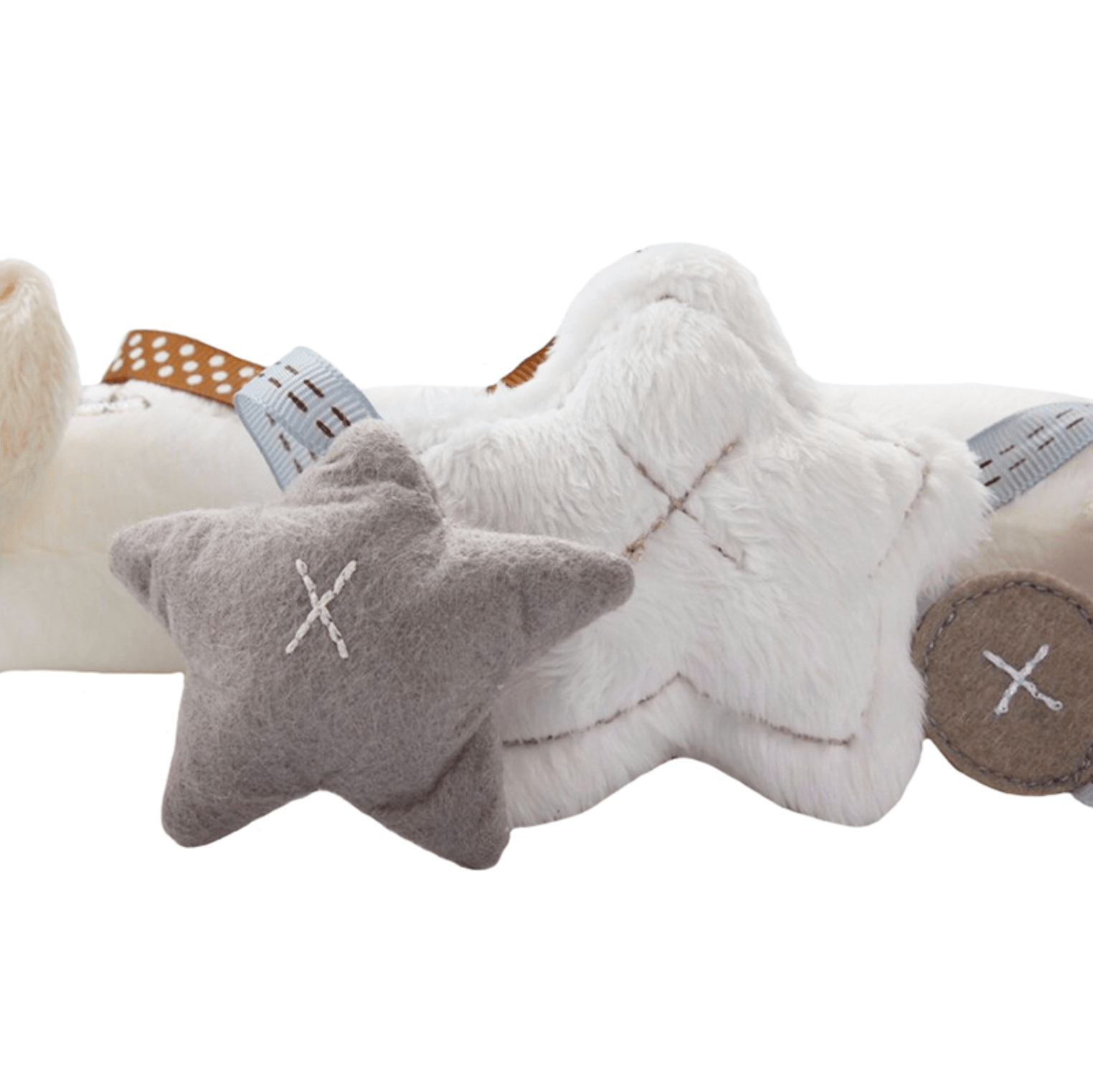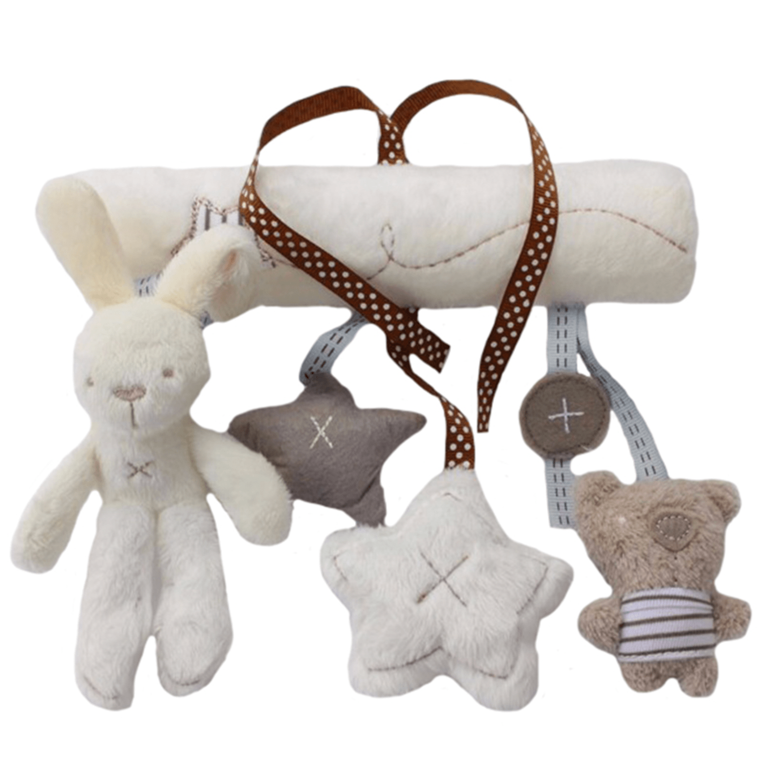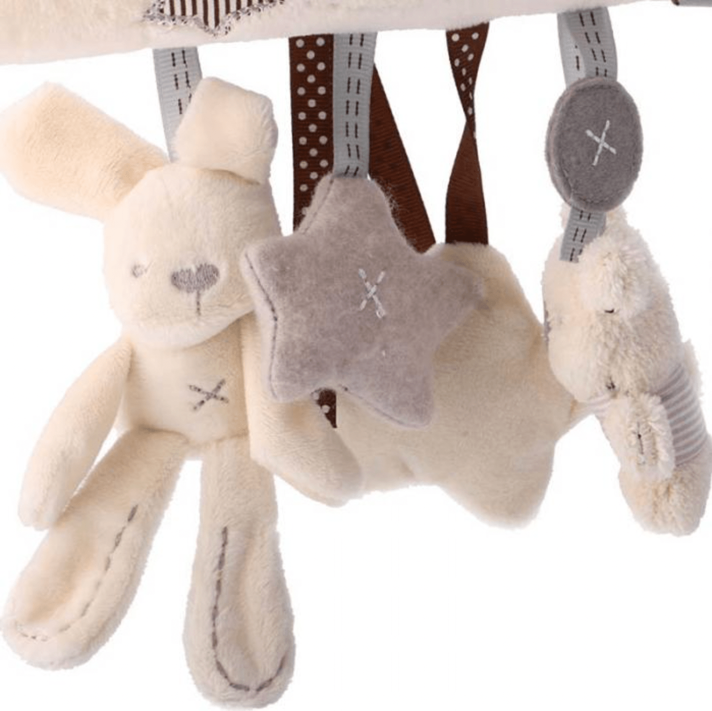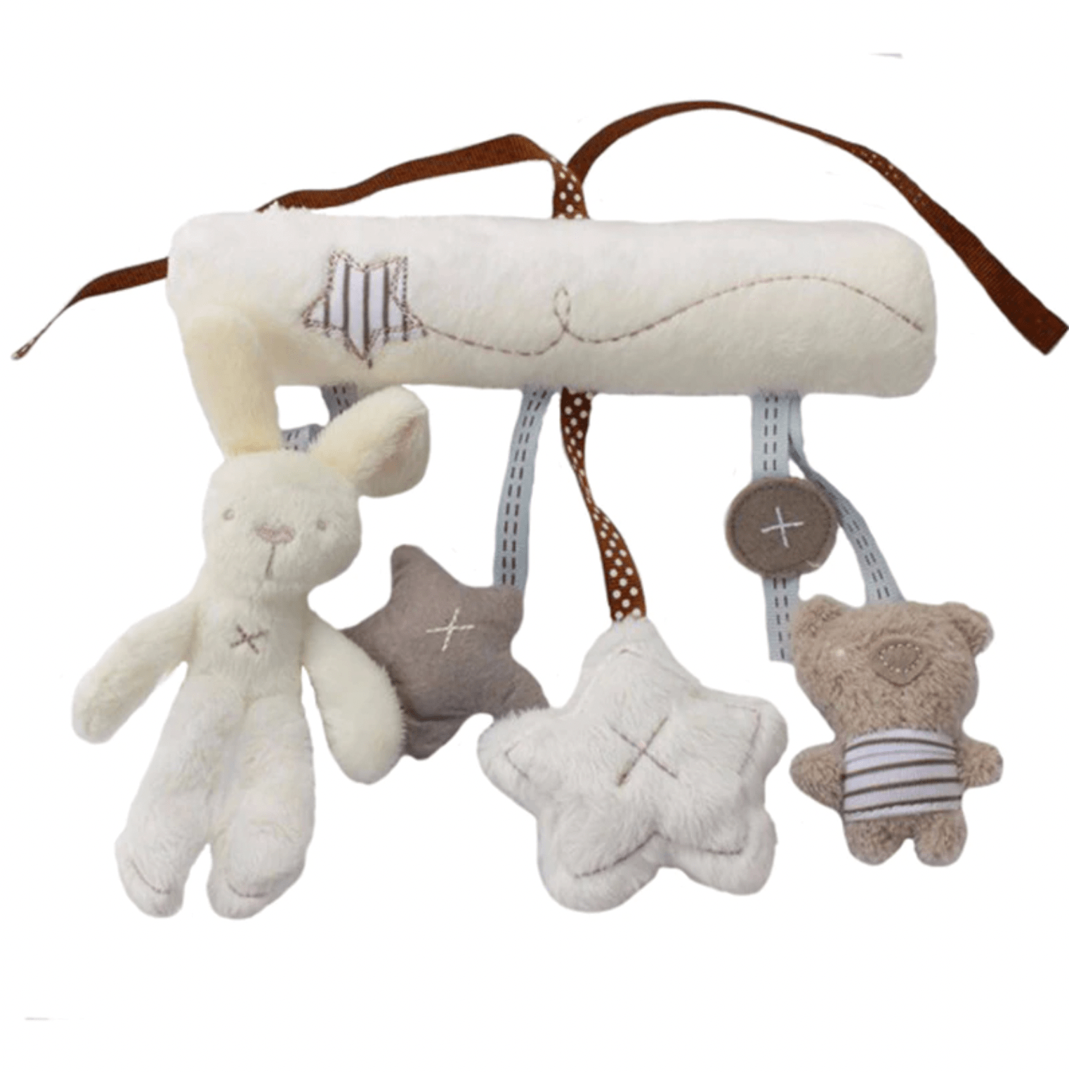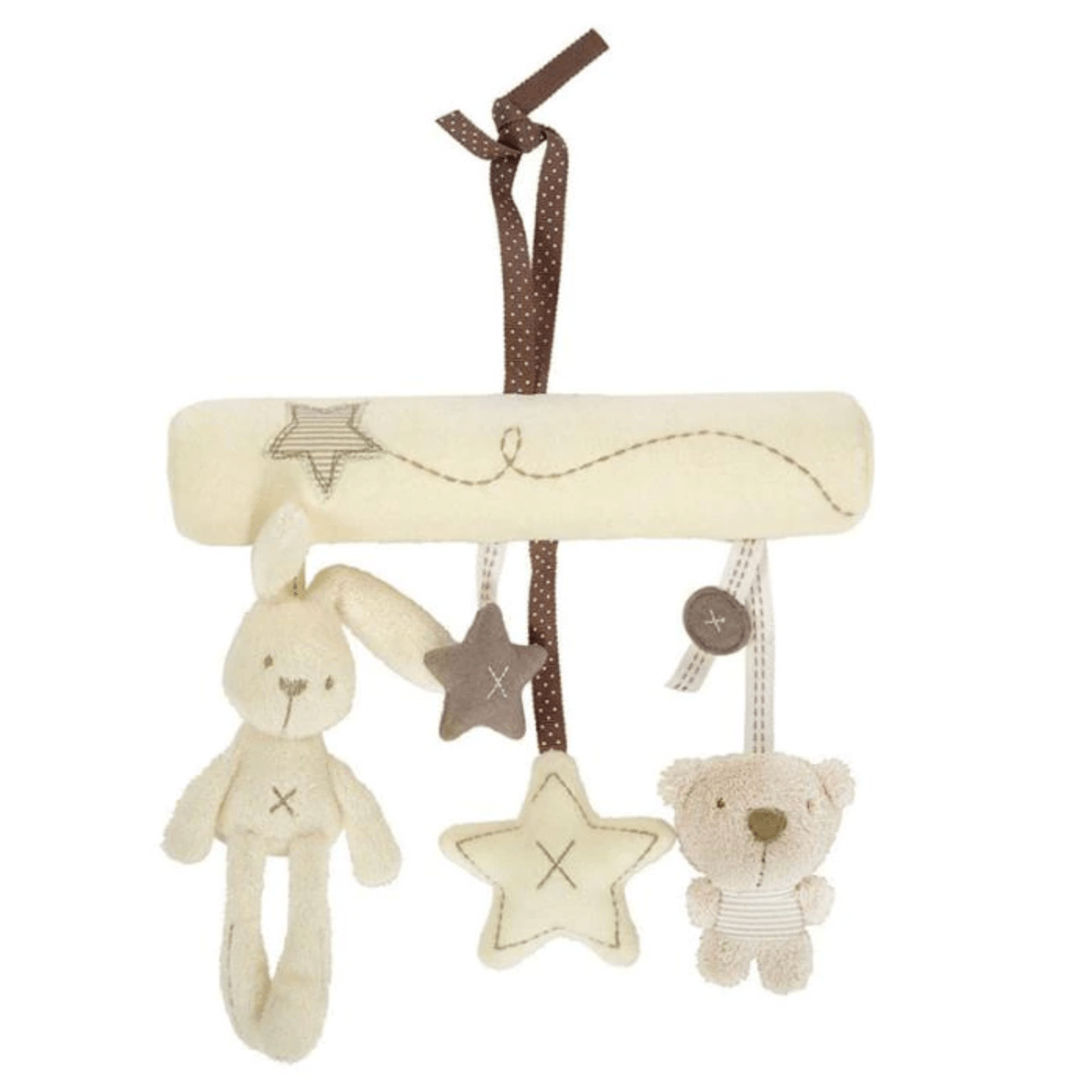 Aceasta jucarie de plus pentru bebelusi, de tip pandantiv, este ideala pentru a o folosi atasata de patutul, de caruciorul sau landoul bebelusilor. Datorita culorilor neutre si a materialului de plus, de foarte buna calitate, ea stimuleaza simtul vazului, auzului si dezvoltarea motricitatii fine, astfel ca bebelusii vor dori sa o descopere si ii vor acorda astfel toata atentia, incercand sa-i desluseasca toate secretele.