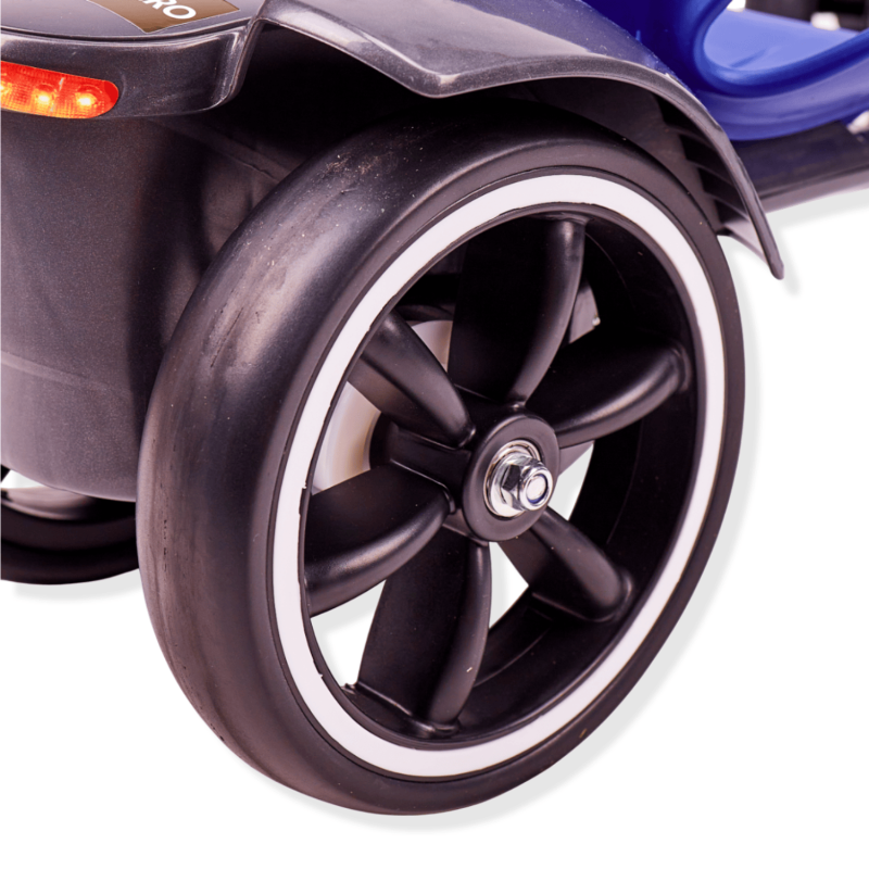 Designul modern, în combinație de albastru și negru, oferă un aspect sportiv, iar Bluetooth-ul integrat permite redarea muzicii preferate în timpul utilizării, transformând fiecare plimbare într-o experiență completă.