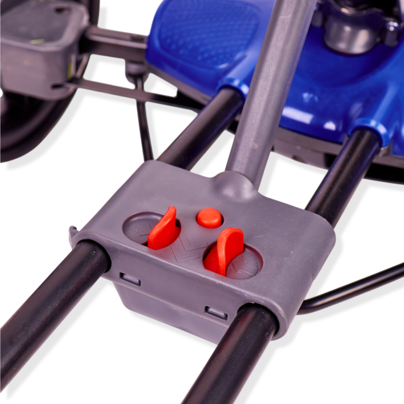 Kartul este dotat cu roți EVA rezistente și silențioase, care asigură stabilitate și aderență pe diverse tipuri de suprafețe. În plus, sistemul pliabil facilitează depozitarea și transportul, fiind ideal pentru familiile active.