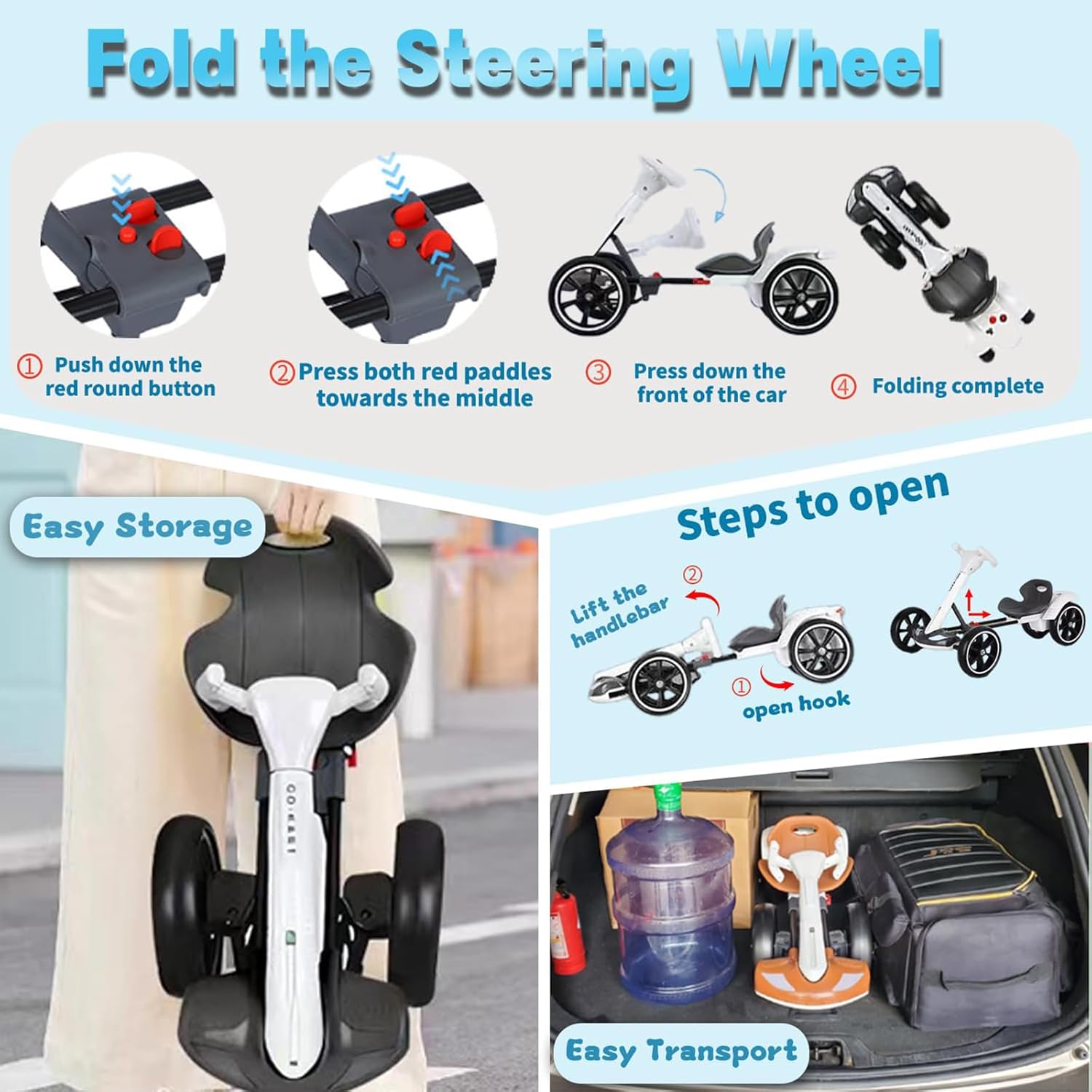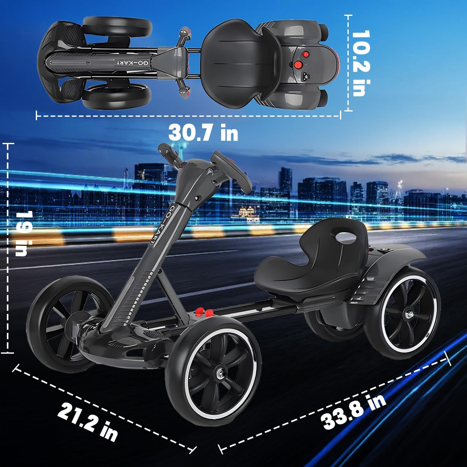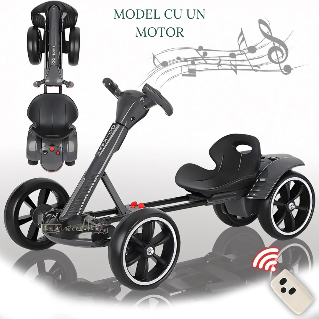 Kart electric de drift, pliabil, cu baterie de 12V, 1 MOTOR, Bluetooth integrat,si telecomanda, 3 Ani+, Negru