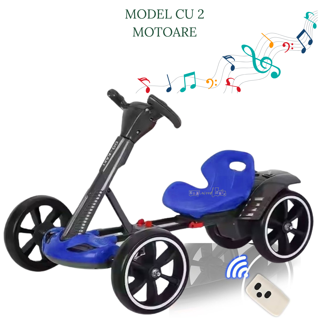 Echipat cu DOUA MOTOARE ELECTRICE silențioase și baterie reîncărcabilă de 12V, kartul asigură o deplasare lină și controlată, fiind potrivit atât pentru utilizare în interior, cât și în exterior. Sistemul de control intuitiv, bazat pe mișcarea volanului și distribuția greutății corpului, permite realizarea de viraje și drifturi spectaculoase.