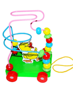 Jucaria are in partea din fata un snur, de care copilul poate trage jucaria pe jos.Dezvoltă aptitudinile locomotorii şi logica.