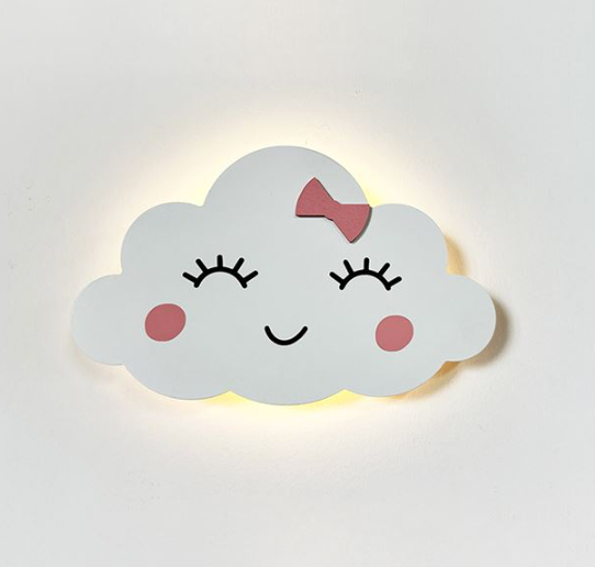 Lampa decorativă din lemn pentru copii, model norisor cu bandă led cu lumină alba și buton On/Off.