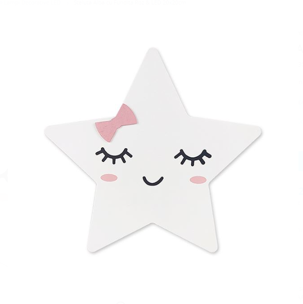 Lampa decorativă din lemn pentru copii, model steluta cu bandă led cu lumină alba și buton On/Off.
