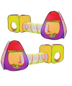 Setul include 2 corturi,un tunel, 200 de bile. Cortul se desface singur. Are geanta de depozitarea cortului.