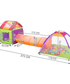 Loc de joaca pentru copii cu tunel,cort si 200 de mingii 379x118x105cm