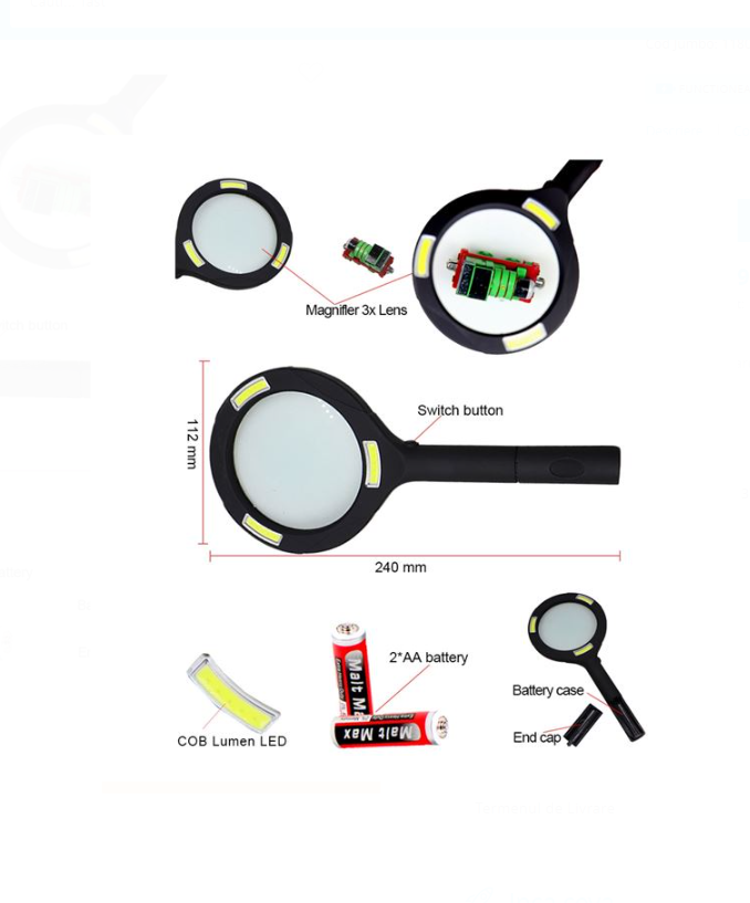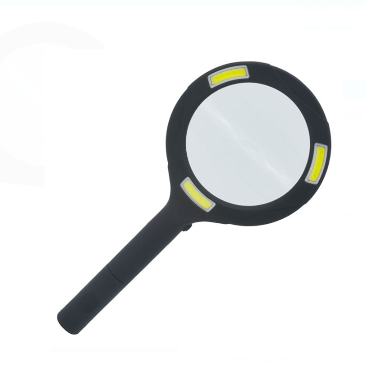 - Lupa cu 3 becuri LED 250 Lumens, 3 Cob, 3W cu maner din cauciuc.