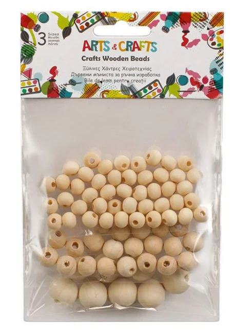 Set de creatie Art&Craft, Margele din lemn, 3 marimi, 80 piese