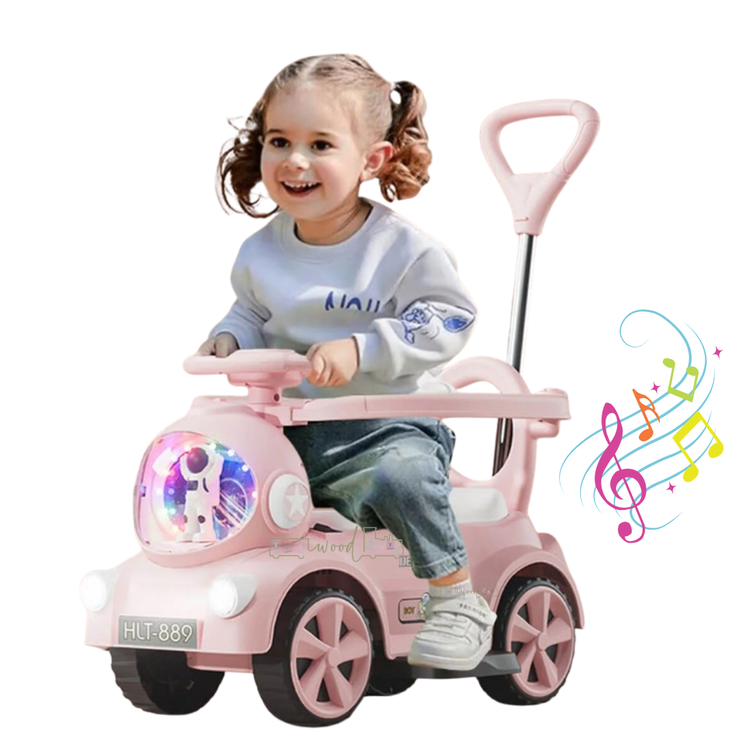 Modelul este echipat cu mâner parental pentru controlul direcției, permițând părinților să ghideze copilul în timpul plimbărilor. În același timp, copilul poate folosi volanul și pedala de deplasare, dezvoltându-și coordonarea și independența.