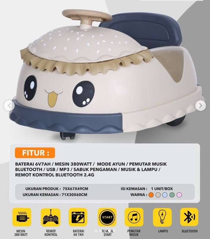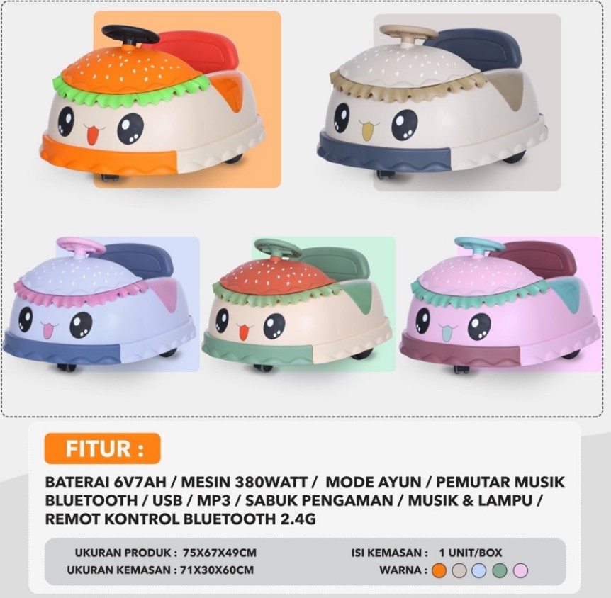 Echipată cu două motoare puternice (380*2) și baterie de 6V, mașinuța asigură o deplasare lină și controlată. Funcția de rotire 360° adaugă un element de distracție suplimentar, transformând fiecare plimbare într-o experiență interactivă și plină de energie.