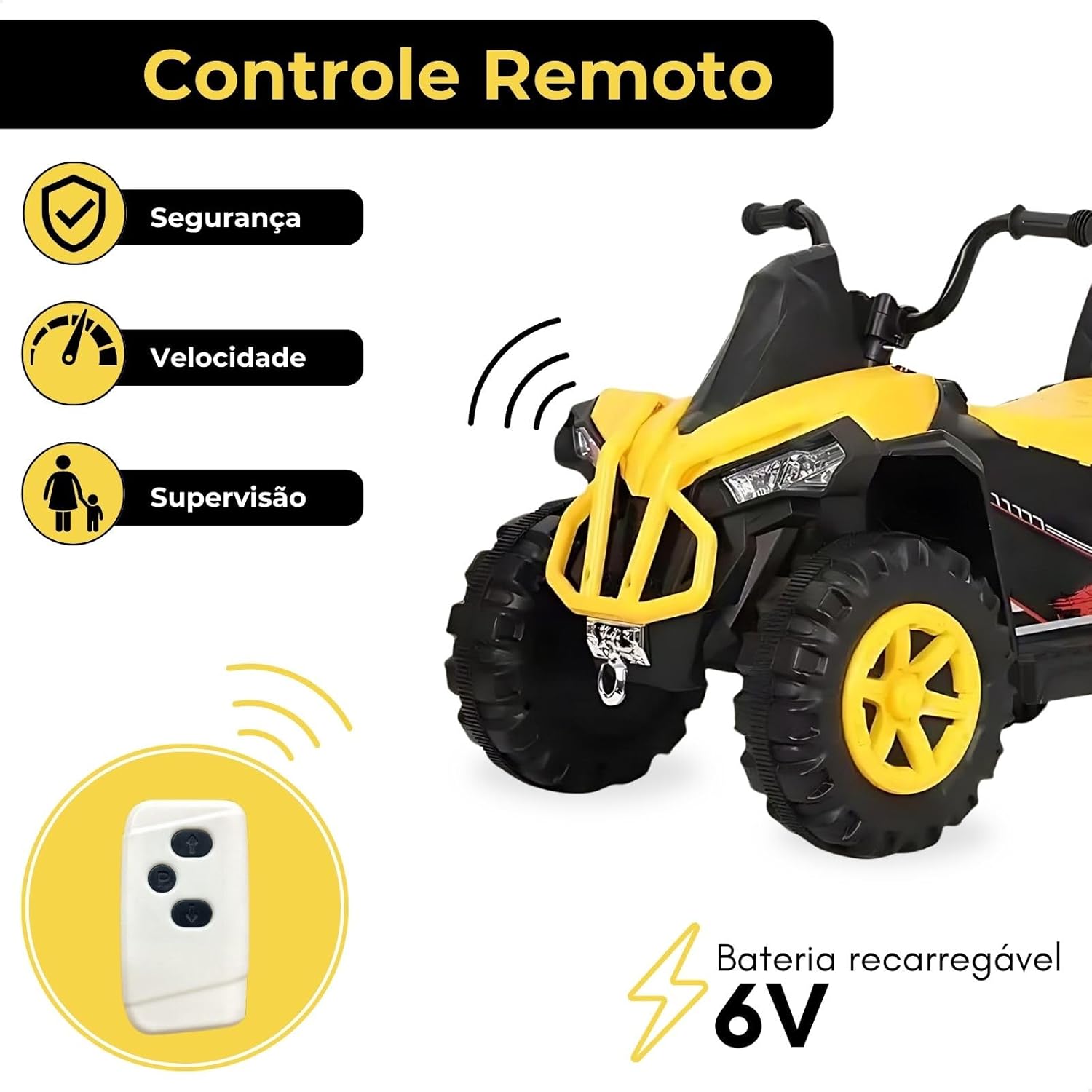 Echipat cu două motoare și baterie reîncărcabilă de 6V, ATV-ul oferă o deplasare lină și controlată, adaptată vârstei copilului. Telecomanda inclusă permite părinților să intervină și să controleze direcția și deplasarea, oferind un plus de siguranță, în special pentru copiii mai mici.