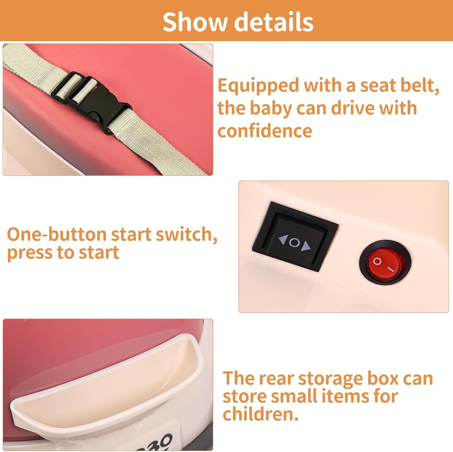 Echipată cu telecomandă pentru control parental, funcții multimedia (USB, muzică, Bluetooth) și sistem de pornire lentă, această mașinuță oferă o experiență completă, adaptată nevoilor copiilor mici și liniștii părinților.