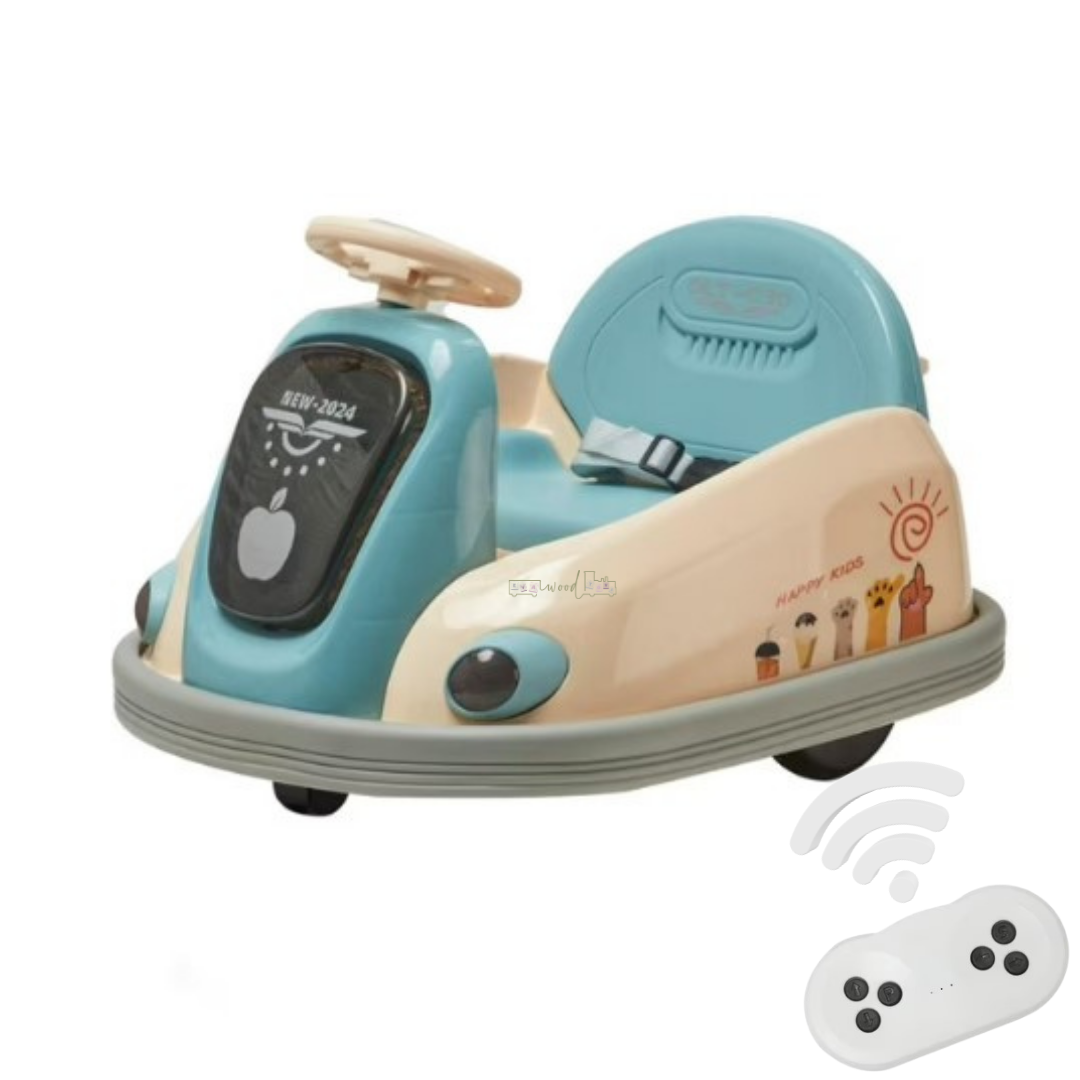 Copilul poate conduce mașinuța tip bumper folosind volanul, experimentând senzația de condus. Părinții pot controla mașinuța prin telecomandă, pentru a asigura siguranța copilului.