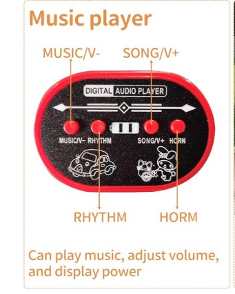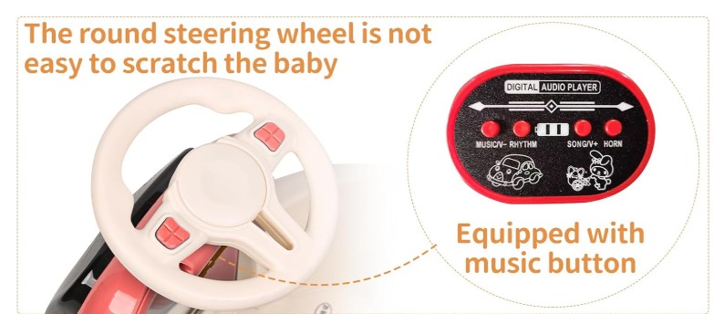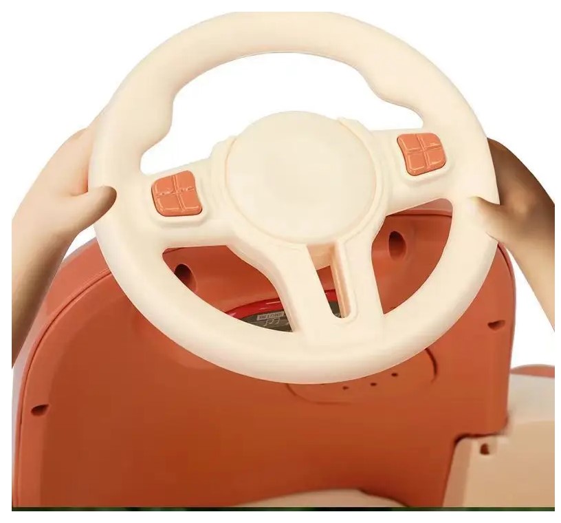 Volan rotund cu butoane tactile, prietenos cu mâinile copiilor, echipat cu: