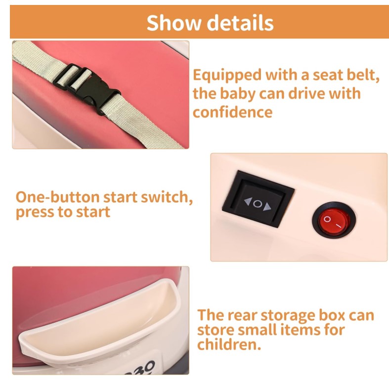 Descoperă bucuria condusului într-un mod sigur și distractiv pentru cei mici! Această mașinuță electrică este ideală pentru copiii cu vârsta cuprinsă între 1 și 4 ani, având un design rotund, prietenos și o funcție specială de rotire la 360° pentru o experiență complet interactivă.