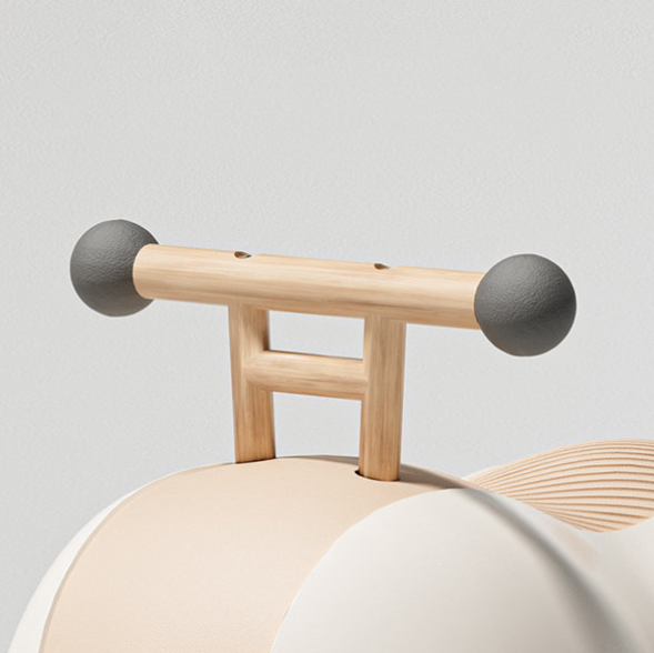 Include maner din lemn cu protectii rotunjite, acoperite de spuma astfel ca cei mici vor fi in siguranta.