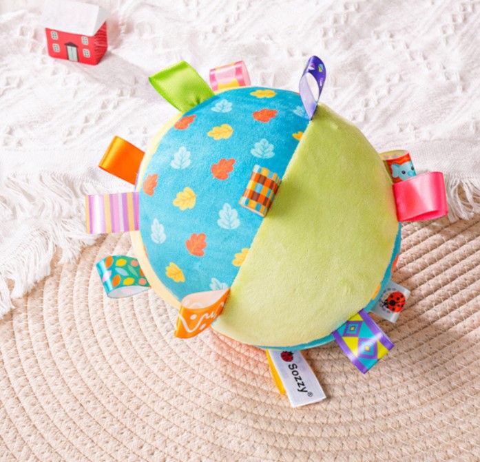 Această minge senzorială este ideală pentru bebeluși, sprijinind dezvoltarea timpurie a percepției tactile și vizuale. Panglicile colorate și texturile variate stimulează coordonarea mână-ochi și curiozitatea copilului. În plus, clopoțelul discret încurajează recunoașterea sunetelor și contribuie la dezvoltarea simțului auditiv.