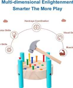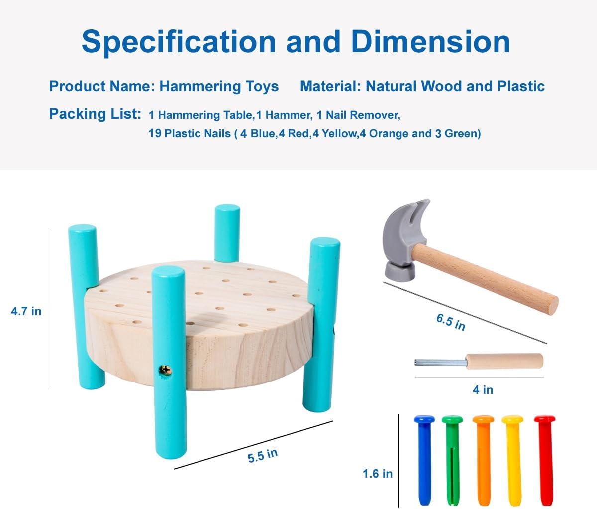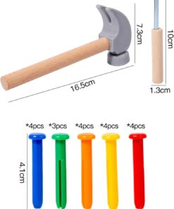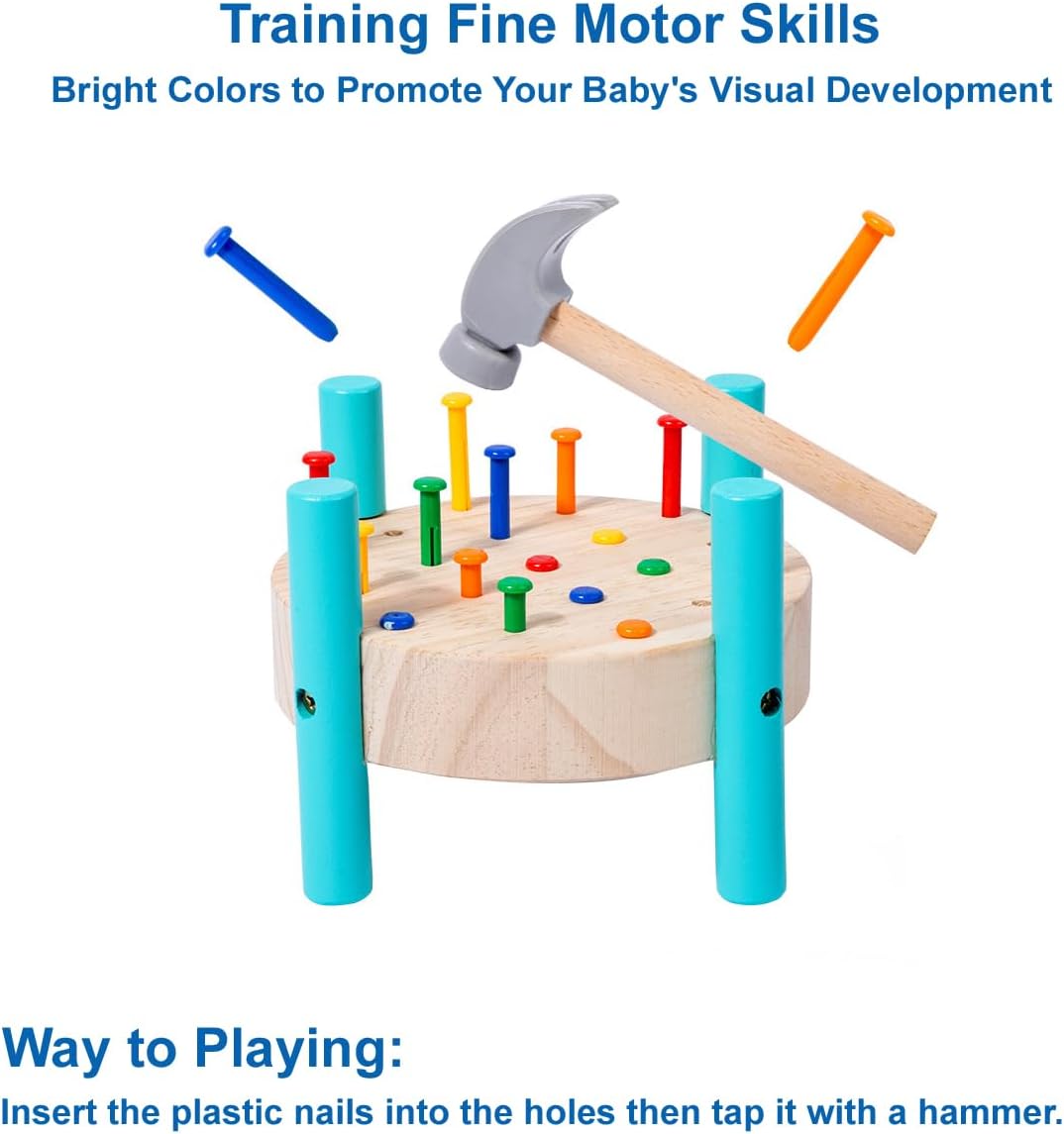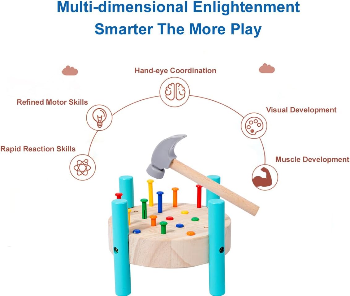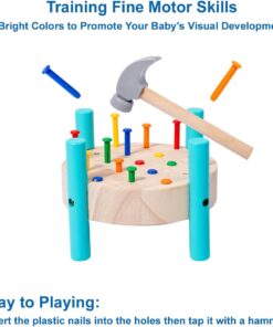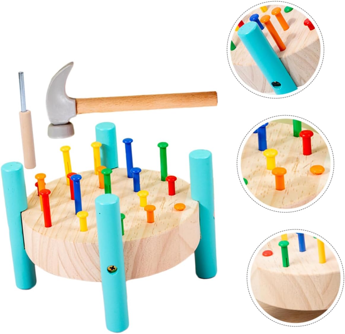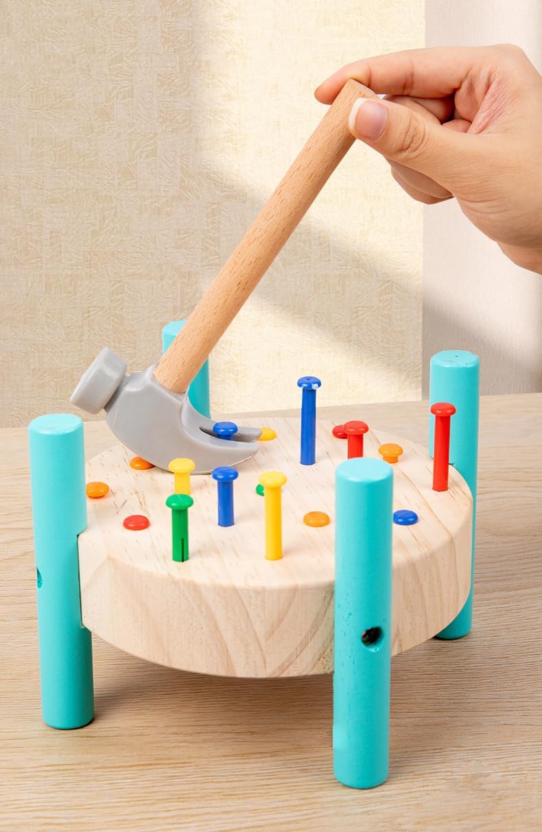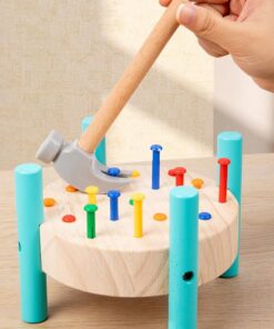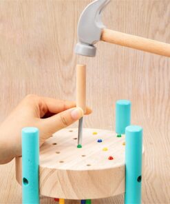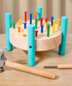 Un joc educativ și distractiv pentru micii exploratori! Mini bancul de lucru este realizat din lemn rezistent și piese colorate, fiind conceput pentru a stimula creativitatea, coordonarea și abilitățile practice ale copiilor. Cei mici pot folosi ciocanul pentru a bate cuiele colorate în găurile speciale, exersând astfel motricitatea fină și concentrarea.