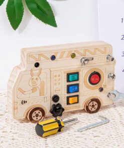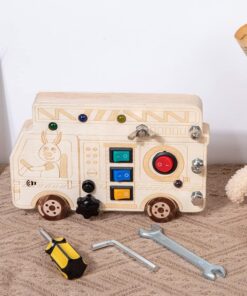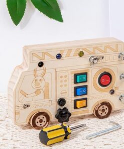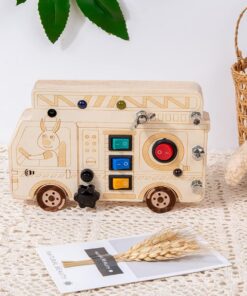 Un joc educativ ingenios, inspirat din viața reală, conceput pentru micii meșteri curioși! Mini Busy Board-ul cu formă de autobuz le oferă copiilor o experiență completă de explorare tactilă, motrică și logică, combinând activitățile mecanice cu elemente de electricitate.
