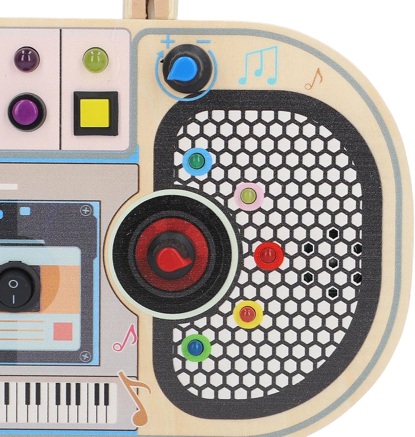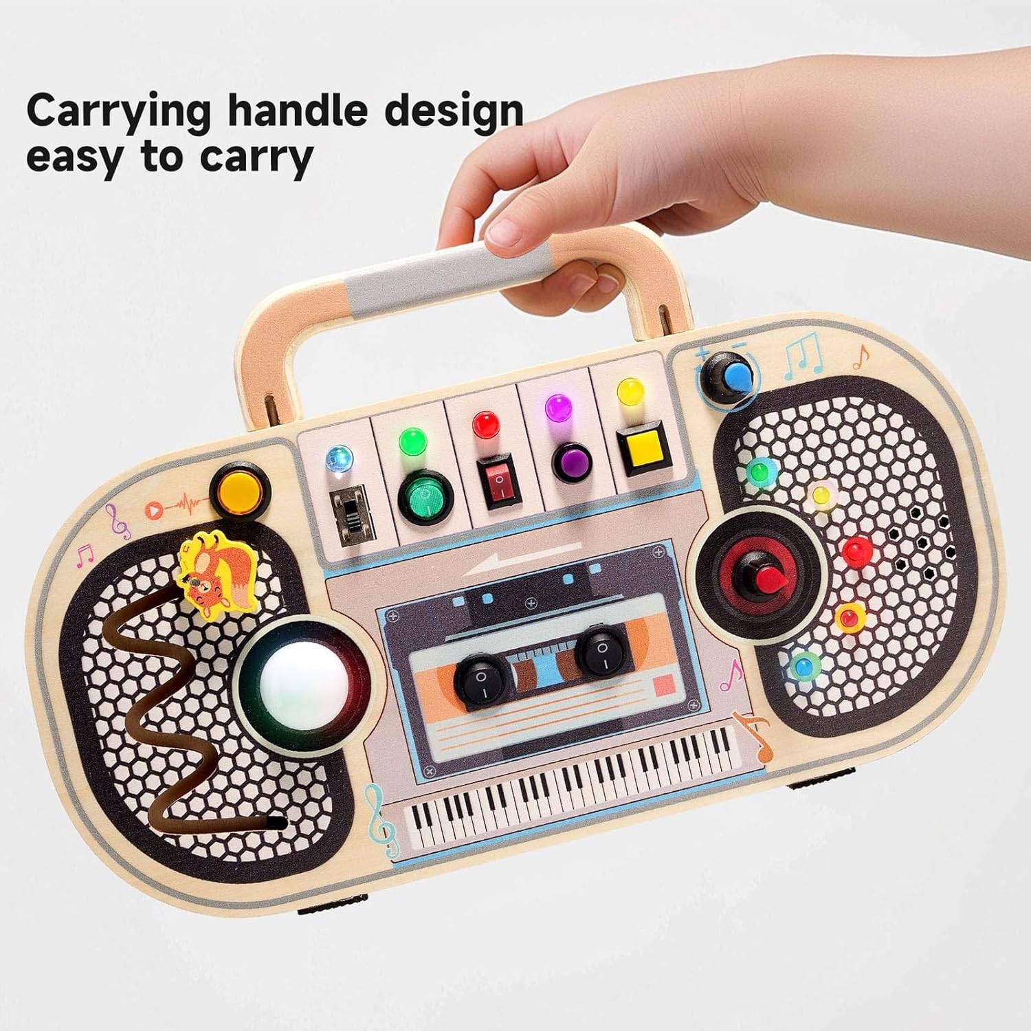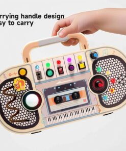 Mini Busy Board cu activități „Radio” este o jucărie educativă din lemn, inspirată din principiile Montessori, menită să stimuleze dezvoltarea autonomiei, coordonării mână-ochi și abilităților motorii fine ale copiilor. Această tablă interactivă include butoane, întrerupătoare, lumini colorate, un traseu de motricitate și elemente senzoriale, oferind o experiență multisenzorială captivantă.