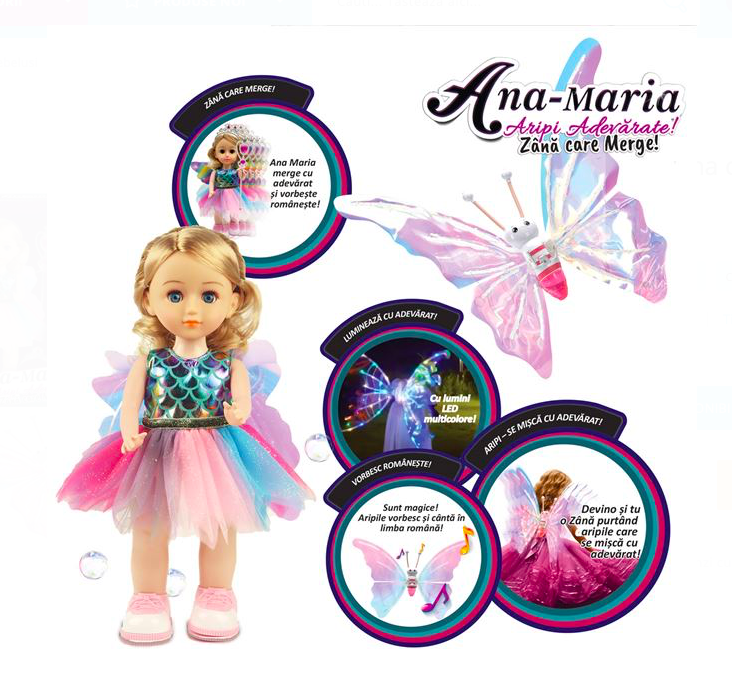 Descopera magia cu papusa Ana-Maria, zana care merge, vorbeste romaneste si interactioneaza cu cei mici, oferindu-le o experienta de joc unica!