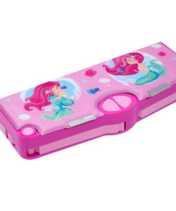 Penarul de scoala roz pentru fete cu design sirena. Dispune de 1 compartiment cu inchidere magnetica, o carcasa de plastic pentru creioane, o carcasa pentru banda adeziva, o carcasa pentru foarfece de plastic, un sertar cu ascutitoare incorporat. Bandă și foarfeca sunt incluse.