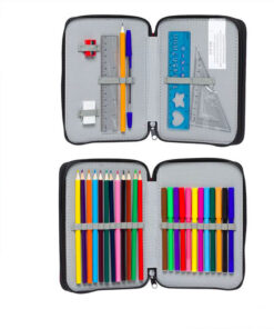 Penar multifunctional cu Dino, complet echipat, cu 3 compartimente. Inchiderea cu fermoar este practica pentru a pastra tot continutul in siguranta si usor de manipulat de catre copii. Usor, lavabil, acest penar este realizat dintr-un material rezistent, care este foarte placut la atingere. Acest penar contine instrumentele de scris necesare la gradinita sau scoala.