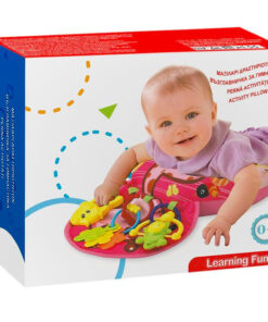 Fiind frumos colorata, cu imprimeuri vesele si cu jucarii zornaitoare si de dentitie atasate, va determina bebelusul sa petreaca mai mult timp pe burtica, acesta fiind un exercitiu bun pentru muschii gatului, ulterior cand bebe poate sta in fundulet, perna este o foarte buna sustinatoare a burticii, iar echilibrul bebelusului va fi mult mai stabil.