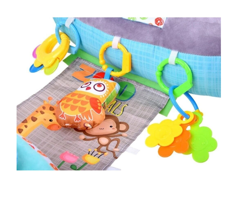 Această pernă multifuncțională pentru bebeluși este un sistem complet de susținere și joacă, adaptat nevoilor copilului încă din primele luni. Forma ergonomică în U oferă stabilitate și sprijin în perioada în care musculatura spatelui și a gâtului este în dezvoltare.