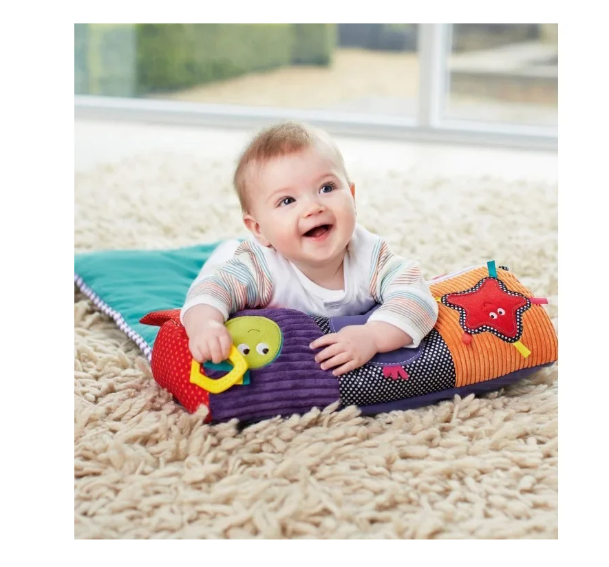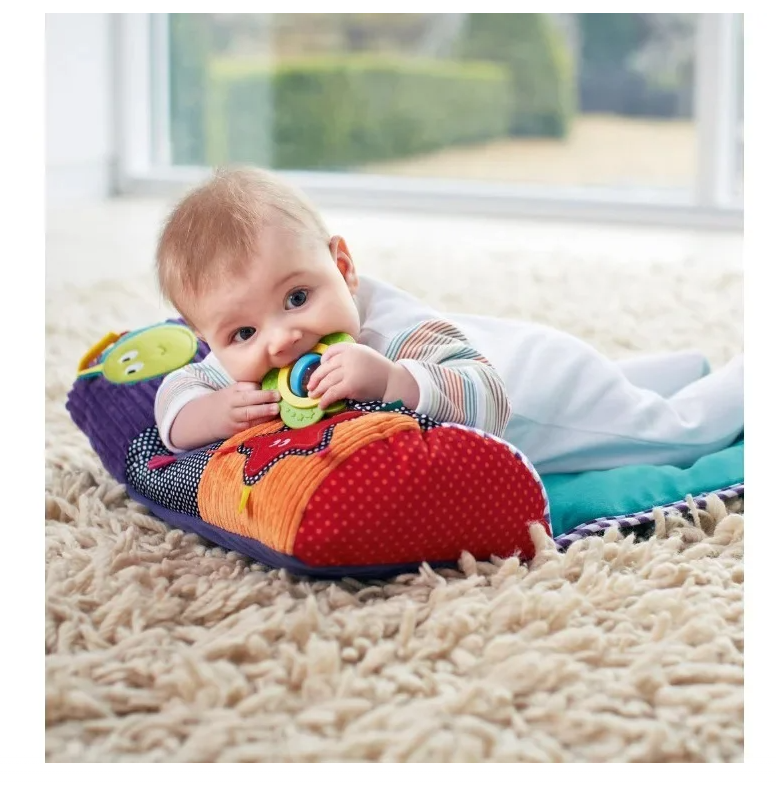 Această pernă este special creată pentru etapa esențială de Tummy Time (joaca pe burtică), recomandată de specialiști pentru întărirea musculaturii gâtului, umerilor și spatelui.