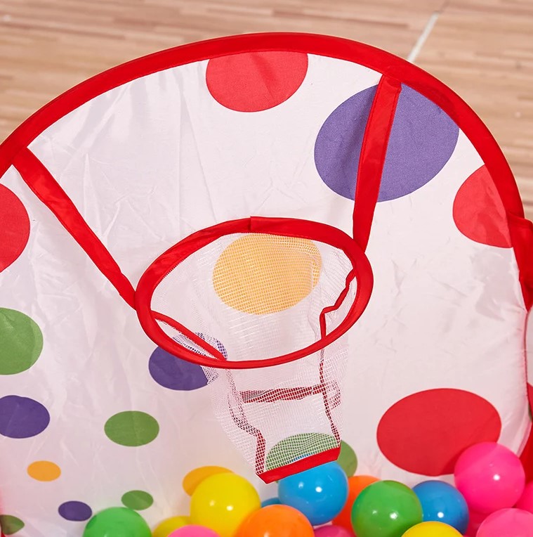 Transformă joaca de acasă într-o experiență distractivă și activă cu această piscină colorată cu bile și mini coș de baschet, ideală pentru copiii energici care adoră să se miște, să sară și să exploreze! Cu un design vesel cu buline, material textil ușor și sistem de pliere rapidă, această piscină este alegerea perfectă pentru orice cameră de joacă sau activitate în aer liber.