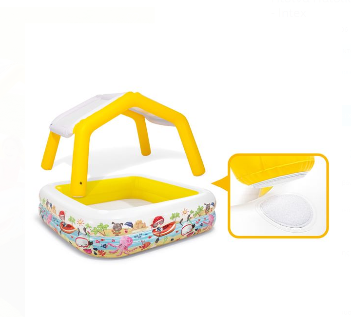 Piscina pentru copii are fund rezistent si pereti laterali gonflabili pentru un plus de durabilitate si confort. Are un acoperis detașabilă pentru a-ți proteja copilul. Conține un plasture pentru reparație.