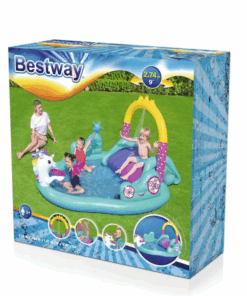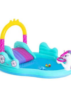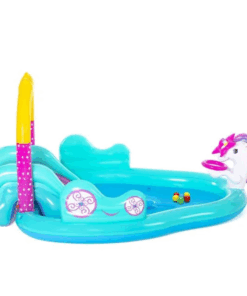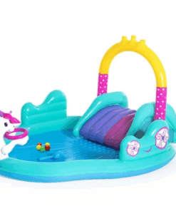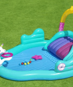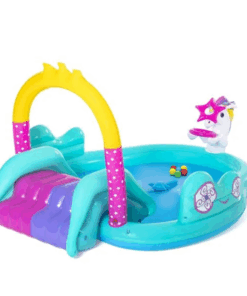 Piscina pentru copii cu Tobogan si Fantana, Unicorn, PVC, 274 x 195 x 137 cm