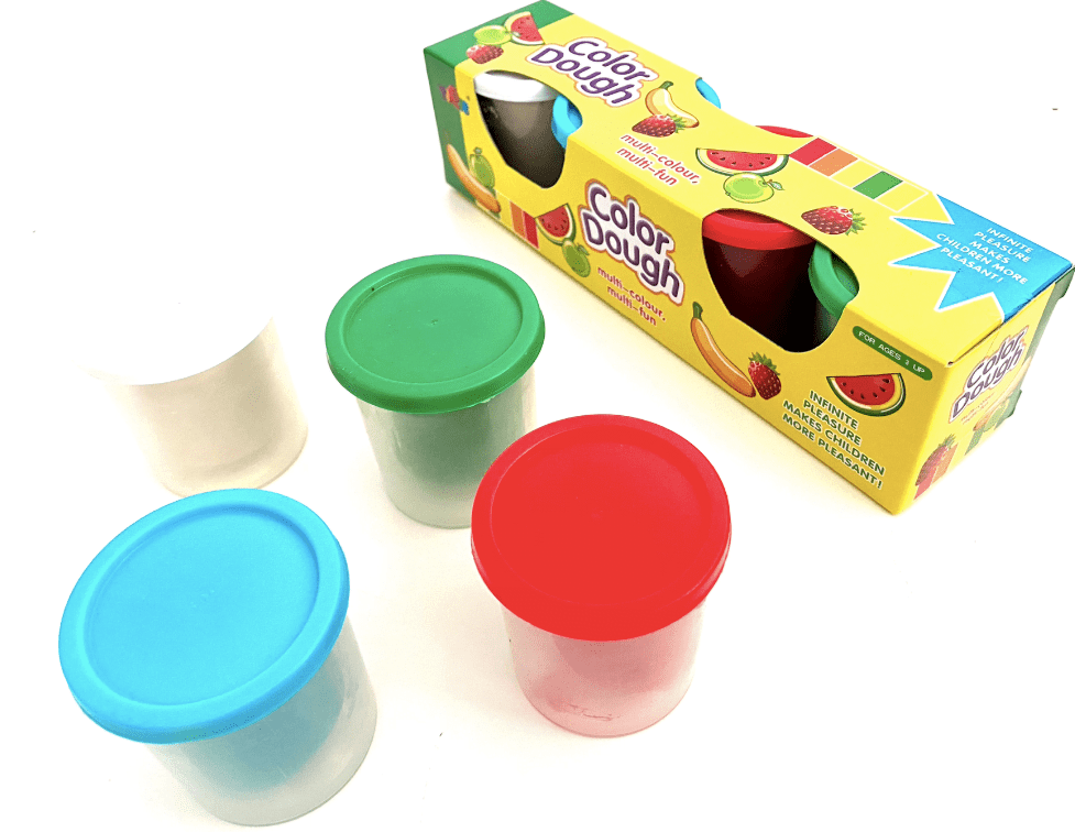 Setul include patru (4) borcanase cu plastilina moale si usor de modelat, non-toxica;