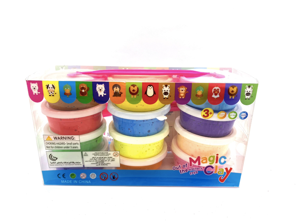 – 12 de cutii cu plastilina Magic Clay, in culori diferite;