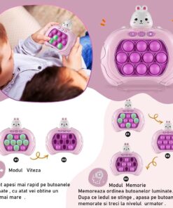 Această consolă interactivă este un joc educativ care îmbină experiența senzorială a unui Pop It clasic cu tehnologia electronică, oferind o modalitate captivantă de a exersa memoria, coordonarea și viteza de reacție. Concepută pentru copiii de la 3 ani în sus, jucăria stimulează atenția și gândirea logică printr-un sistem de iluminare și sunete care ghidează jocul.