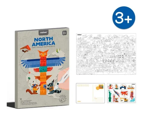 Poster de desenat 1170×812 mm America de Nord, Mideer, 3 ani+