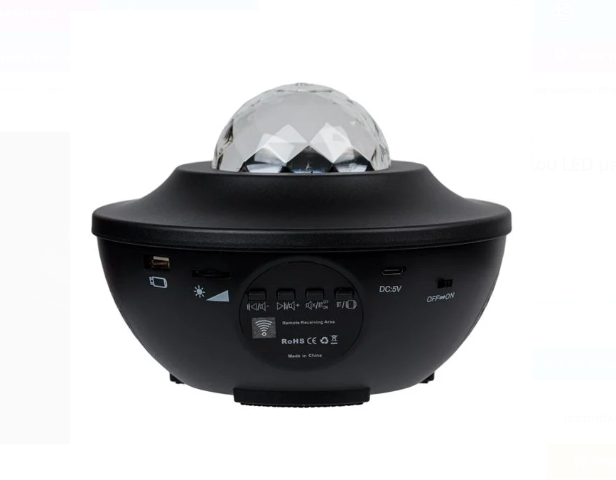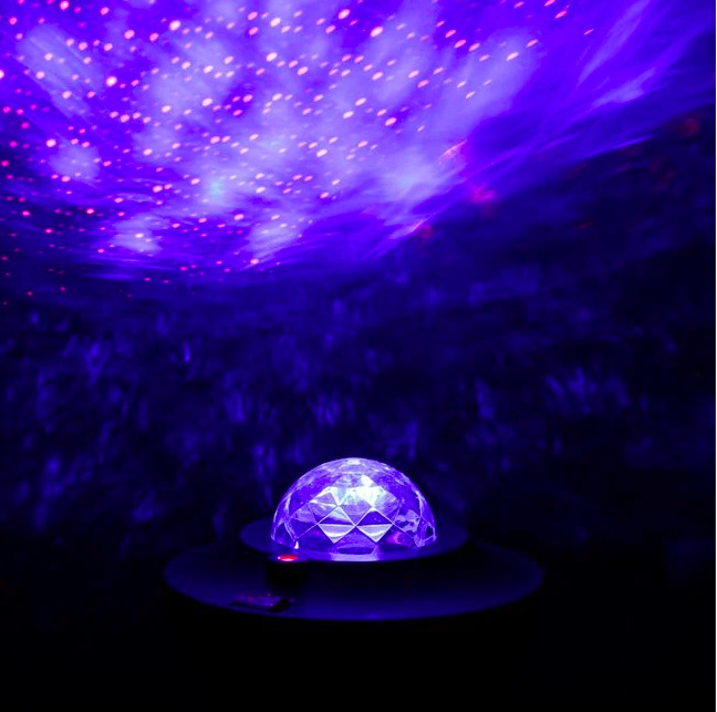 Proiectorul luminează tavanul și are 3 funcții: funcția valurile oceanului care are 3 niveluri de luminozitate, lumină led și laser.
