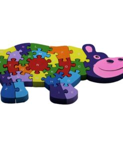 Puzzle 3D din lemn cu Numere si Alfabet – Hipopotam